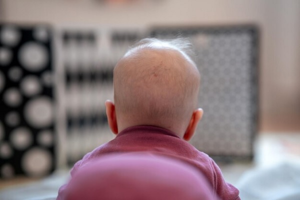 Some infants will rub their heads so vigorously on the crib mattress, the floor, or another surface that they will eventually have hair loss at the rear of their scalp. Children outgrow this tendency as they become mobile and begin sitting and standing for extended periods. If they cease rubbing their scalp, their hair should start to grow again.